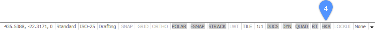 O assistente de Teclas de Atalho (HKA) pode ser Ativado/Desativado usando a variável de sistema HOTKEYASSISTANT.As opções dentro do assistente dependem dos comandos para os quais o assistente está disponível.