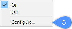 Se o assistente tiver sido desativado para um comando ou ação específica (selecionar, arrastar, editar), você poderá reativá-lo por meio da caixa de diálogo Configurar Assistente de Atalhos. Você pode usar a mesma caixa de diálogo para desativar o assistente para esses comandos/ações. Para abrir a caixa de diálogo Configurar Assistente de Atalhos, clique o botão-direito no botão HKA na barra de Status e clique na opção Configurar... (5).