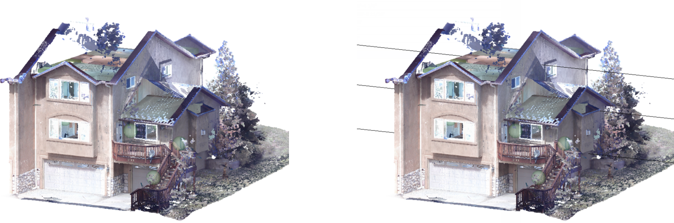 - Corte de Nuvem de pontos do piso de uma casa e um plano ajustado: