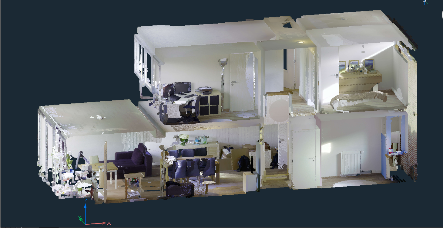Ao mesmo tempo, uma imagem raster é gerada para dar ao usuário algum contexto. Em alguns casos, não é necessário recriar com sólidos o edifício existente. Imagens de fundo podem fornecer muito mais contexto para os documentos do projeto. Essas podem ser usadas para verificar a geometria 2D criada, mas em escanerizações de alta qualidade, essas imagens também podem ser usadas como material gráfico. Por exemplo, como uma imagem de fundo para um modelo BIM em projetos de renovação em edifícios históricos, onde uma intervenção moderna está sendo feita.