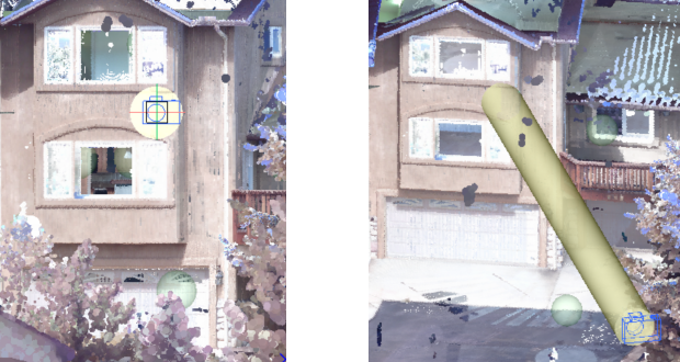O snap da entidade de Ponto +Próximo Nuvem de pontos (comando PCNEAREST/variável de sistema 3DOSMODE) melhora significativamente a capacidade de selecionar pontos relevantes da Nuvem de pontos. Este usa um cilindro imaginário a partir do ponto de vista atual, voltada para o cursor.