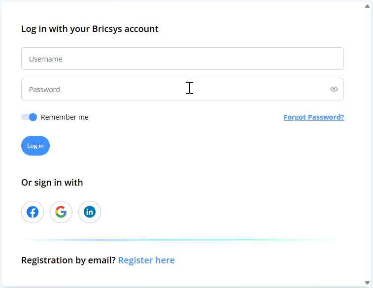 Se você não tiver uma conta, clique em Registrar aqui para configurar sua conta Bricsys.