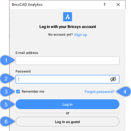 Você pode fazer Log In na sua conta Bricsys usando: