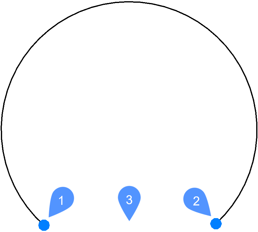Em arcos e círculos, a quebra ocorre no sentido anti-horário do primeiro para o segundo ponto de quebra.