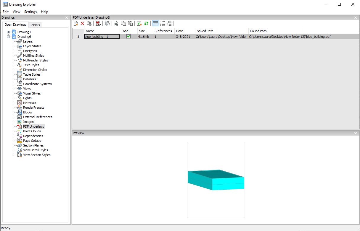 Anexa arquivos PDF como subjacências ao desenho atual, através do Explorer do Desenho.