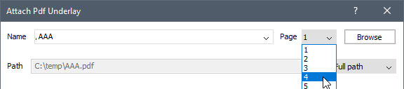 Na caixa de diálogo Anexar Subjacência PDF, escolha um número de página na lista suspensa Página.