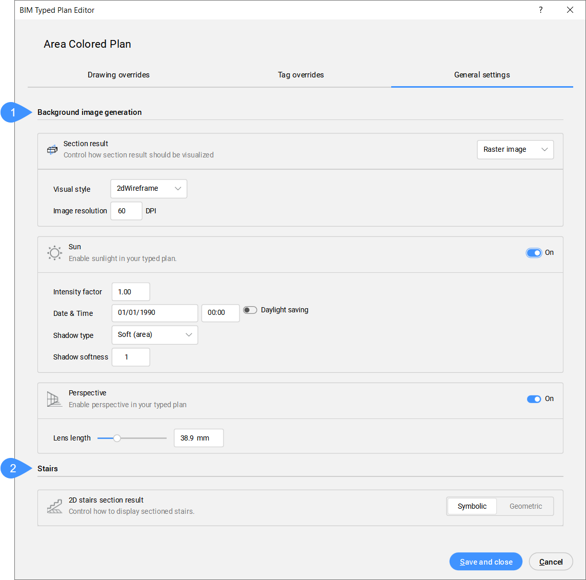- Permite controlar a geração de representações 2D de entidades de Escada BIM durante a geração de um corte:
