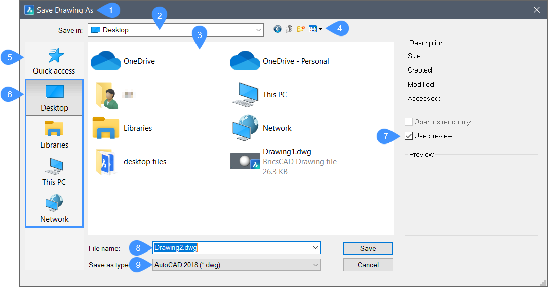 A caixa de diálogo Salvar arquivo (Não padrão) fornece funcionalidade extra além da caixa de diálogo padrão: